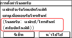 การเปลี่ยนโหมด RX แฟกซ์และการตั้งค่าการดำเนินการเมื่อรับแฟกซ์[แฟกซ์/โทรศัพท์ (สลับอัตโนมัติ)]