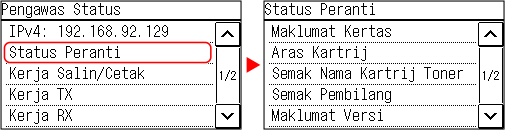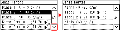 Apabila bar skrol muncul pada skrin, ia menunjukkan bahawa terdapat item atau maklumat yang tidak dapat dipaparkan sepenuhnya pada skrin. Ketik [