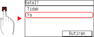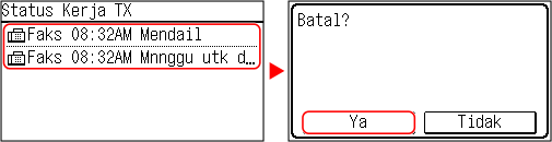Jika skrin senarai kerja dipaparkan, pilih kerja untuk dibatalkan, dan tekan [Ya].