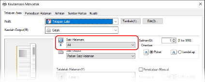 Dalam [Saiz Output], pilih saiz kertas untuk dicetak. Dokumen akan dibesarkan atau dikecilkan untuk dipadankan dengan saiz kertas dalam [Saiz Output].