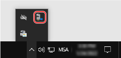 ] (Canon MF Network Scanner Selector) yang dipaparkan di kawasan pemberitahuan Windows.