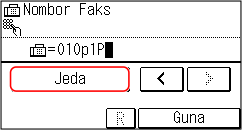 Apabila menghantar faks ke destinasi antarabangsa, masukkan nombor akses antarabangsa, kod negara, dan nombor faks mengikut urutan ini. Jika anda tidak dapat menyambung, tekan [Jeda] di antara turutan nombor ini untuk menambahkan masa menunggu.