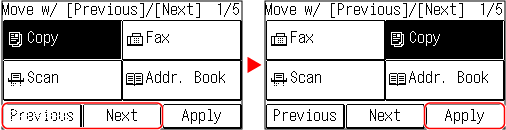 Select [Previous] or [Next] to move the button, and press [Apply].