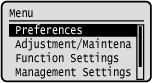 Changing the Screen DisplayYou can change the operation panel display such as by changing the display language and units, and show or hide messages. [Display Settings] You can invert the screen colors and adjust the contrast to make the screen easier to view. [Accessibility] Clearing the Settings AutomaticallyBy default, if no operations are performed after a certain period of time, the settings being configured on the screen are cleared, and the [Home] screen is displayed. You can change the time until the settings are cleared and the screen that is displayed after. [Auto Reset Time] [Function After Auto Reset] |