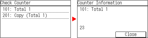 You can display a counter showing the total number of pages copied and printed to date by black & white.