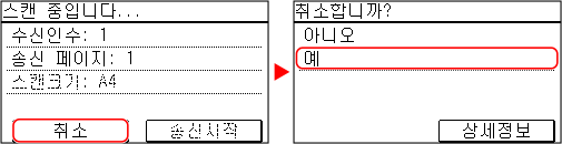화면 지시에 따라 팩스 전송을 취소할 수 있습니다.