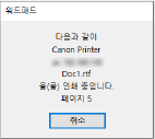 위의 화면이 표시되지 않으면 Windows 알림 영역에서 프린터 아이콘을 두 번 클릭하고, 취소할 문서를 선택한 다음, [문서]