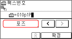 국제 대상으로 팩스를 전송하는 경우 대상의 국제 액세스 번호, 국가 코드, 팩스 번호를 이 순서대로 입력합니다. 번호 사이에 [포즈]를 눌러 일시 중지를 추가합니다.