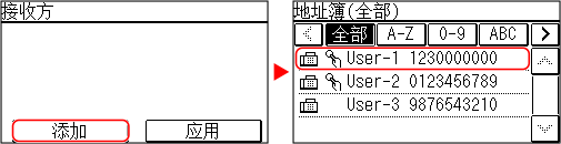 如果显示 [地址簿PIN] 屏幕,请输入 PIN,然后按下 [应用]。