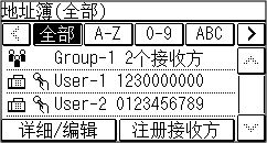 可以将多个已注册的传真号码目的地作为群组注册到编码拨号。这省去了在发送数据时分别指定多个目的地的麻烦。最多可以注册 50 个群组。