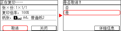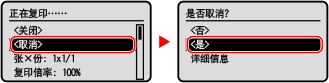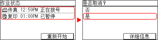 如果显示作业列表屏幕,请选择要取消的作业,然后按下 [是]。