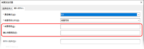 在 [输入收件人] 选项卡上,输入传真号码。在可以输入 [确认传真号码] 时,输入相同的传真号码。
