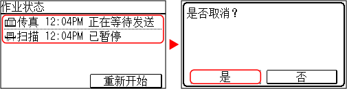 如果显示作业列表屏幕,请选择要取消的作业,然后按下 [是]。