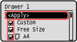 Clear the checkboxes of the paper sizes to hide, and press [<Apply>]