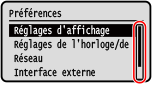 Lorsque la barre de défilement apparaît à l'écran, cela indique que certains éléments ou informations ne peuvent pas être affichés complètement à l'écran. Utilisez