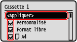 Décochez les cases des formats de papier à masquer, et appuyez sur [<Appliquer>]