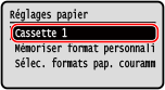 Par défaut, le format et le type de papier du cassette à papier sont paramétrés comme A4 et Ordinaire 2. Lorsque du papier d'un format ou d'un type différent est chargé, modifiez les paramètres du papier.