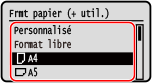 Vous pouvez faire défiler l'écran pour visualiser les formats de papier (tels que les enveloppes) qui ne sont pas affichés à l'écran.