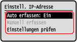 3 | Drücken Sie [IP autom.] [Aus] . |