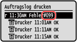 Wenn nicht gedruckt werden kann oder wenn ein anderer Fehler auftritt, wird im Auftragsprotokoll ein Fehlercode (eine dreistellige Zahl, die mit "#" beginnt) angezeigt.