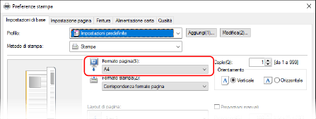 Quando si stampa su carta in un formato diverso da [Formato pagina]