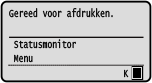 Het scherm verschijnt onmiddellijk nadat u het apparaat AAN hebt gezet en het opstartscherm sluit.