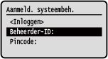 Als ID systeembeheerder is ingesteld, verschijnt het inlogscherm voor activiteiten die beheerdersrechten vereisen.