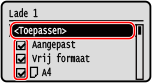 Als u een verborgen papierformaat wilt weergeven, drukt u op [Overige frm.] op het scherm met papierinstellingen.