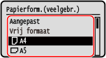 Selecteer de afmetingen van het papier dat in de papierlade ligt, en druk op