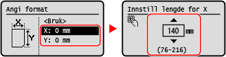 Du kan registrere format når du ofte bruker spesifikke papirformat som ikke er standard. Du kan hente frem papiret på skjermbildet for format, og slippe å angi formatet.