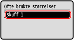 Skjermbildet for papirinnstillinger viser registrerte, ofte brukte papirformat. Hvis ubrukte papirformat vises, kan du skjule disse slik at det blir lettere å velge papirformat.