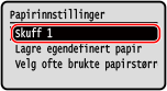 Som standard er papirformat og -type for papirskuffen stilt inn til A4 og Vanlig 2. Når papir med et annet format eller -type legges i, må du endre papirinnstillinger.