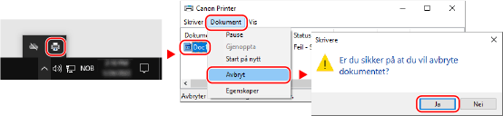 Hvis skriverikonet ikke vises i varslingfeltet i Windows eller dokumentet som skal kanselleres ikke vises, er utskriftsdataene sendt til maskinen etter behandling på datamaskinen.