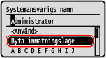 Använd knapparna på skärmen för att välja bokstäver och siffror och tryck sedan på