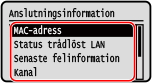 Visa MAC-adressen och anslutningsinformationen för trådlöst LAN