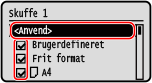 Fjern markeringen i afkrydsningsfelterne for de papirstørrelser, der skal skjules, og tryk så på [<Anvend>]