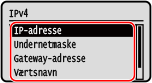 Du kan få vist indstillingerne for IP-adressen, der er indstillet til maskinen, såsom IPv4-adressen og IPv6-adressen.