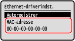 Du kan få vist den MAC-adresse, der er indstillet til maskinen, når maskinen er tilsluttet det kabelbaserede LAN.