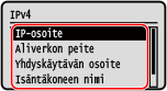 Laitteeseen asetetun IP-osoitteen näyttäminen