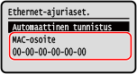 Voit näyttää laitteeseen asetetun MAC-osoitteen, kun laite on yhdistetty langalliseen lähiverkkoon.