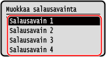 3 | Valitse [Muokkaa salausavainta] ja paina . |