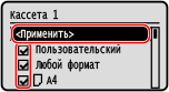 Снимите флажки форматов бумаги, которые требуется скрыть, затем нажмите [<Применить>]