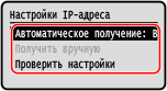 5 | Выберите [Получить вручную] и нажмите .Откроется экран ввода IP-адреса. |