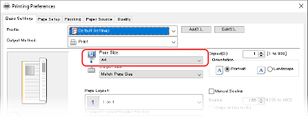 В [Page Size] на раздела [Basic Settings] изберете размера на хартията на документа.