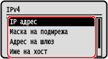 Стартиране на Отдалечен ПИКогато използвате IPv4 адрес, можете да използвате следната процедура, за да изпратите команда ping от операционния панел, за да проверите дали устройството може да се свърже с мрежово устройство.