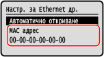 Можете да видите MAC адреса, зададен на устройството, когато устройството е свързано към кабелна LAN.