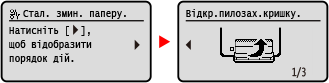 Змінення інтерфейсу екранаВи можете змінити інтерфейс панелі керування, наприклад змінити мову інтерфейсу й одиниці вимірювання та показати чи приховати повідомлення. [Параметри відображення] Можна інвертувати кольори екрана й налаштувати контрастність, щоб полегшити перегляд вмісту екрана. [Спеціальні можливості] Автоматичне очищення параметрівЗа замовчуванням, якщо після певного періоду часу не виконуються жодні операції, буде очищено параметри, які налаштовуються на екрані, і відобразиться екран [Головний]. Можна змінити час, що минає до очищення параметрів. [Час автоматичного скидання] |