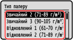 Виберіть тип паперу, завантаженого в шухляду для паперу, і натисніть