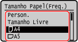 Quando o papel está colocado na orientação horizontal, selecione [A5]. Quando o papel está colocado na orientação vertical, selecione [A5R].