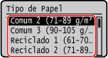 Se precisar de mudar frequentemente o papel a ser colocado, defina a opção [Livre]; isto vai reduzir o número de passos necessários para mudar a definição de cada vez. No entanto, tenha em atenção que esta definição permite que a máquina imprima mesmo que a definição de tipo de papel no controlador da impressora não corresponda ao tipo de papel que está efetivamente colocado na máquina.